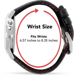 - MANY COLORS AVAILABLE: Silver, Gold, Two-Tone (Gold / Silver). All Colors come with a black leather watch band with red, blue, orange or white colored stitch genuine