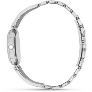Womens Full Stainless Steel 28mm Round Analog Watch – Anti-Scratch Sapphire Glass. Solid Stainless Link Semi-Bangle Band – Japanese Quartz Movement -Gemstone Markers – Jewelry Clasp – Silver Tone – ME3311-1