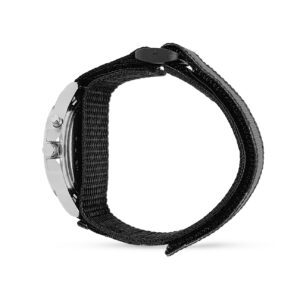 40mm Mens Stainless Steel Glow Watch – Hook & Loop Nylon Sports Band – Easy to Read Watch, Push Button Light Up – Black Band – ME3235G-VB