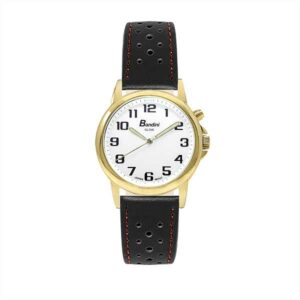 Bandini Mens Glow Watch – Extra Long Leather Rally Strap – 38mm Analog Men’s Easy Read Watch with Light Up, Quartz, White Dial, Big Numbers, Glow in Dark Hands – Gold Tone / Black and Red