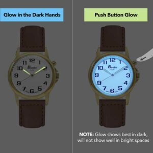 - EASY-TO-READ MENS GLOW WATCH with LIGHT: 38mm Analog White Dial that Light up with the Push of a Button to Glow in the Dark, Luminous Hands