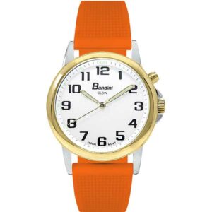 Bandini Mens Glow Watch – Washable Deployment Silicone Band – 38mm Analog Men’s Easy Read Watch with Light, Light Up Watches, Quartz, White Dial, Big Numbers, Glow in Dark Hands – Two-Tone / Orange