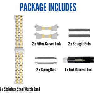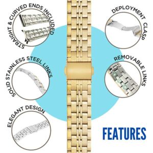 Bandini Mens Jubilee Style Metal Stainless Steel Watch Band, Straight or Curved End – 18mm, 20mm, 22mm, 24mm