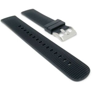 - STYLISH AND COLORFUL: Silicone watch band made of silky soft silicone rubber and a stainless steel buckle. Available in black, brown, red, orange, blue, burgundy, green, and pink. This rubber watch band is dressy enough for the office and fun / sporty enough for everyday use.