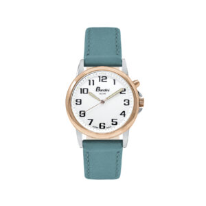Bandini Womens Glow Watch – Leather Band – 28mm Analog Women’s Easy to Read Wrist Watch with Light, Light Up Watches, Quartz, White Dial, Big Numbers, Glow in Dark Hands – Rose Gold Tone / Blue