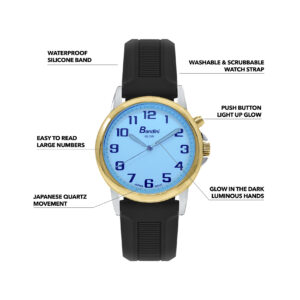 - WATERPROOF SILICONE WATCH BAND STRAP (14mm): Washable watch band made from top quality rubber / silicone and built to last. Ideal for very active people that are required to wash their hands frequently such as nures, orderlies, doctors, cleaning people, maintenance workers or anyone else that is very active and requires a light up glow watch