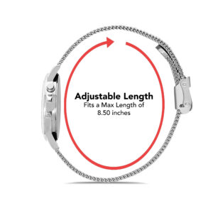 • ADJUSTABLE LENGTH MESH WATCH BAND: Easy to wear 14mm easy to adjust stainless steel milanese mesh watch band with double fold-over clasp, making it very easy to put on and comfortable to wear on a daily basis. Band Fits a Max Wrist Size of: 8.50 inches