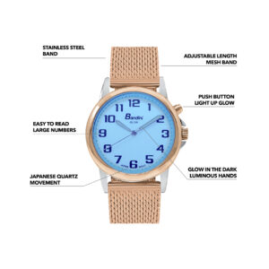 Bandini Womens Mesh Glow Watch – Stainless Steel Adjustable Band, 28mm Analog Women’s Metal Wrist Watches, Japanese Quartz – White Dial, Large Easy to Read Numbers, Glow in Dark Hands – Rose Gold Tone