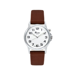 Bandni Womens Glow Watch – Leather Quick Release Band, 28mm Analog Women’s Easy to Read Watch with Light, Light Up Watches, Quartz, White Dial, Big Numbers, Glow in Dark Hands – Silver Tone / Brown