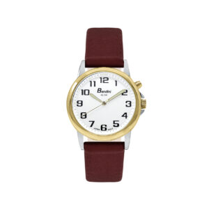 Bandni Womens Glow Watch – Leather Quick Release Band – 28mm Analog Women’s Easy to Read Watch with Light, Light Up Watches, Quartz, White Dial, Big Numbers, Glow in Dark Hands – Two-Tone / Burgundy