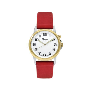 Bandni Womens Glow Watch – Leather Quick Release Band – 28mm Analog Women’s Easy to Read Wrist Watch with Light, Light Up Watches, Quartz, White Dial, Big Numbers, Glow in Dark Hands – Two-Tone / Red