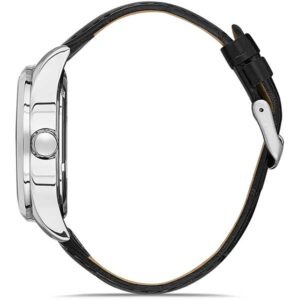 Daniel Klein 43mm Automatic Sun and Moon Phase Mens Watch, Leather Strap – Silver / Black Dial – 5 ATM – DK.1.13440-2