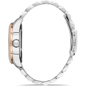 Daniel Klein 43mm Automatic Sun and Moon Phase Mens Watch, Stainless Steel Strap – Two-Tone / Black Dial – 5 ATM – DK.1.13441-4