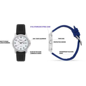 Orlean Mens Easy to Read Watch with Day / Date – 316L Stainless Steel Case, Washable Waterproof Silicone Watch Band – 38mm Analog Men’s Wrist Watches – White Dial, Big Numbers – Two-Tone / Black Band