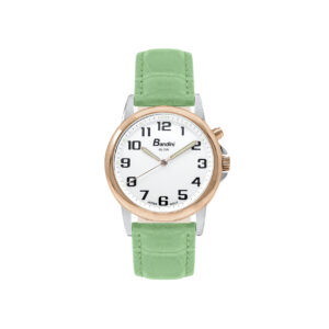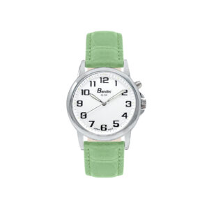 Bandini Womens Glow Watch – Alligator Pattern Leather Band – 28mm Analog Women’s Easy to Read Watches Light Up, Quartz, White Dial, Big Numbers, Glow in the Dark Hands – Silver Tone / Light Green