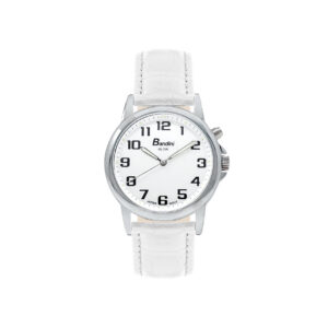 Bandini Womens Glow Watch – Alligator Pattern Leather Band, 28mm Analog Women’s Easy to Read Watches with Light Up, Quartz, White Dial, Big Numbers, Glow in Dark Hands – Silver Tone / White
