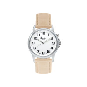Bandini Womens Glow Watch – Leather Band – 28mm Analog Women’s Easy to Read Wrist Watch with Light, Light Up Watches, Quartz, White Dial, Big Numbers, Glow in the Dark Hands – Gold Tone / Beige