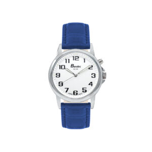 Bandini Womens Glow Watch – Alligator Pattern Leather Band, 28mm Analog Women’s Easy to Read Watches with Light Up, Quartz, White Dial, Big Numbers, Glow in Dark Hands – Silver Tone / Blue