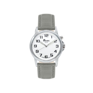 Bandini Womens Glow Watch – Alligator Pattern Leather Band, 28mm Analog Women’s Easy to Read Watches with Light Up, Quartz, White Dial, Big Numbers, Glow in Dark Hands – Silver Tone / Grey