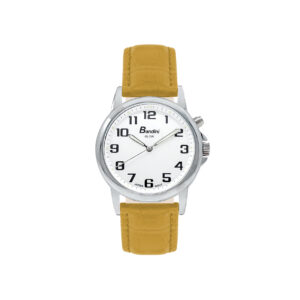 Bandini Womens Glow Watch – Alligator Pattern Leather Band, 28mm Analog Women’s Easy to Read Watches with Light Up, Quartz, White Dial, Big Numbers, Glow in Dark Hands – Silver Tone / Yellow
