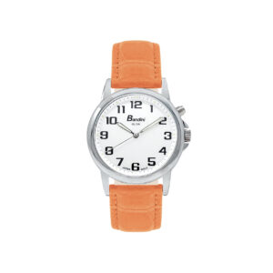 Bandini Womens Glow Watch – Alligator Pattern Leather Band, 28mm Analog Women’s Easy to Read Watches with Light Up, Quartz, White Dial, Big Numbers, Glow in Dark Hands – Silver Tone / Orange