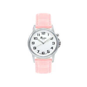 Bandini Womens Glow Watch – Alligator Pattern Leather Band, 28mm Analog Women’s Easy to Read Watches with Light Up, Quartz, White Dial, Big Numbers, Glow in Dark Hands – Silver Tone / Pink