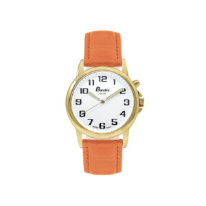 Bandini Womens Glow Watch – Alligator Pattern Leather Band, 28mm Analog Women’s Easy to Read Watches with Light Up, Quartz, White Dial, Big Numbers, Glow in Dark Hands – Gold Tone / Orange