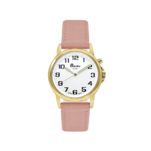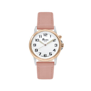 Bandini Womens Glow Watch – Leather Band – 28mm Analog Women’s Easy to Read Wrist Watch with Light, Light Up Watches, Quartz, White Dial, Big Numbers, Glow in the Dark Hands – Gold Tone / Blush Pink