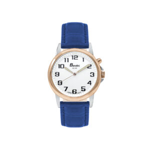 Bandini Womens Glow Watch – Leather Band – 28mm Analog Women’s Easy to Read Wrist Watch with Light, Light Up Watches, Quartz, White Dial, Big Numbers, Glow in the Dark Hands – Gold Tone / Blue