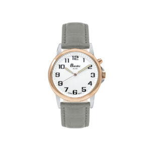 Bandini Womens Glow Watch – Alligator Pattern Leather Band, 28mm Analog Women’s Easy to Read Watches with Light Up, Quartz, White Dial, Big Numbers, Glow in Dark Hands – Rose Gold Tone / Grey