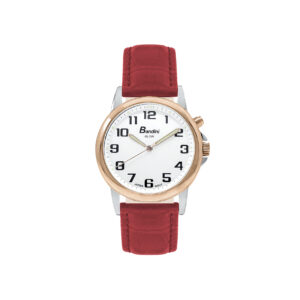 Bandini Womens Glow Watch – Alligator Pattern Leather Band, 28mm Analog Women’s Easy to Read Watches with Light Up, Quartz, White Dial, Big Numbers, Glow in Dark Hands – Rose Gold Tone / Red